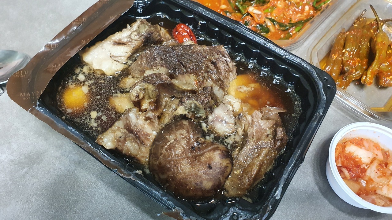 또한 전자레인지에서 9분 정도 해동했을 때 소갈비찜이 좀 질긴 느낌이었습니다. 아마도 전자레인지로 데워서 그런 것 같습니다. 자연해동을 통해 제대로 데워야 식당에서 먹는 맛과 어느 정도 유사한 맛을 느낄 수 있을 것으로 생각됩니다.