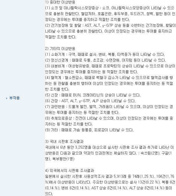 이러한 부작용은 일반적으로 경미하며 일시적인 경우가 많습니다. 그러나 만약 부작용이 지속되거나 심해진다면 즉시 의사의 진료를 받아야 합니다.