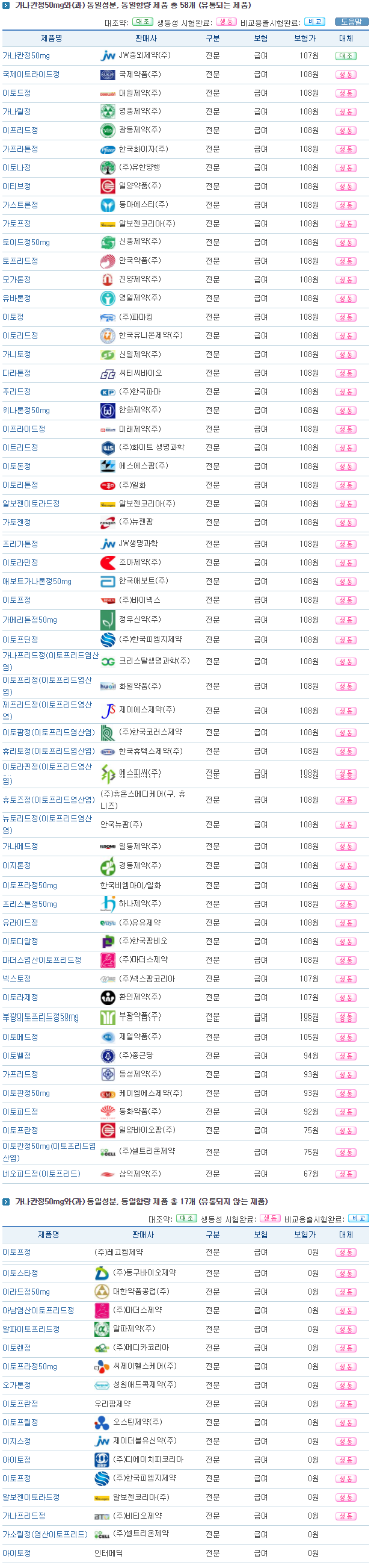 애보트 가나톤정 50mg과 중외제약 가나칸정 50mg: 염산이토프리드(ITOPRIDE HCL)의 효능과 부작용