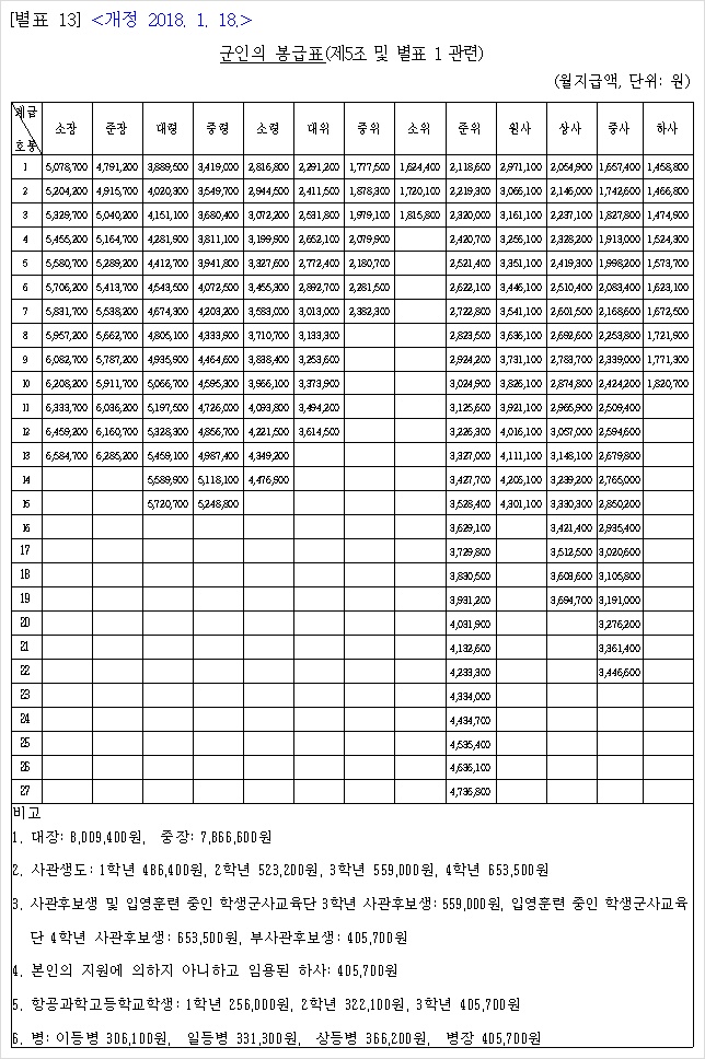 이것은 2018년에 최저임금 16.4% 인상에 따른 최하위직 간부인 하사 월급을 최저임금 수준에 맞추기 위해서 통상수당이 기본급에 포함되었기 때문입니다.